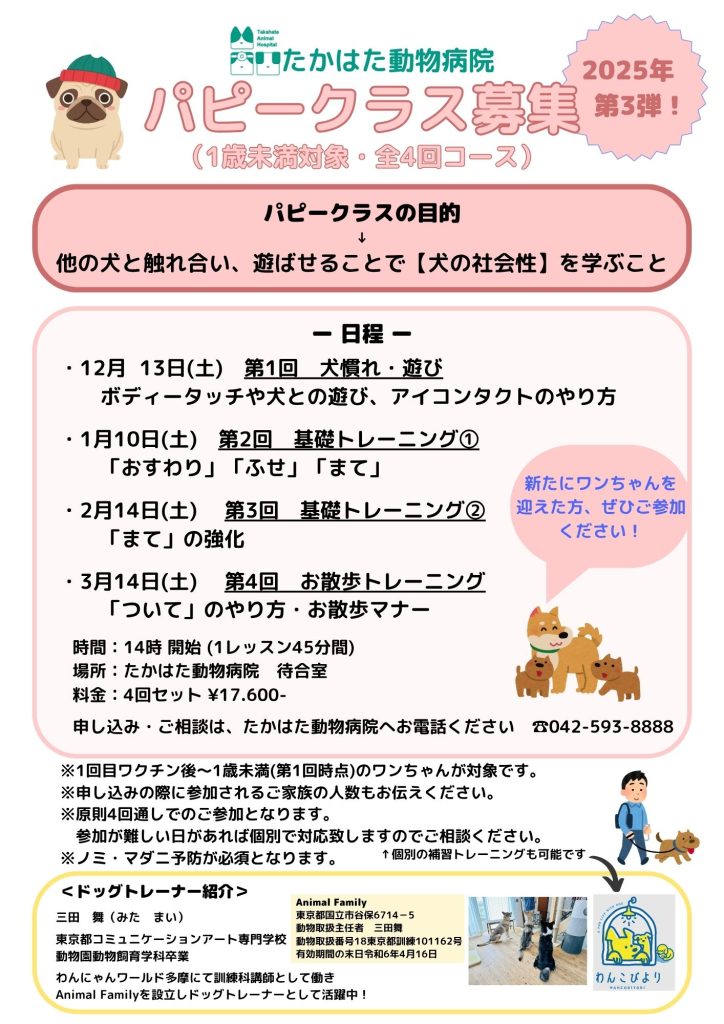 2025年12月より、パピークラスを実施いたします。