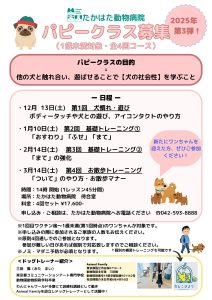 【2024年6月8日(土)スタート】第3回パピークラス参加者募集のおしらせ